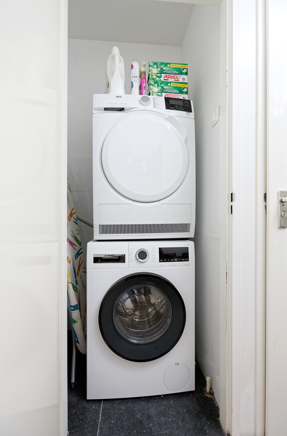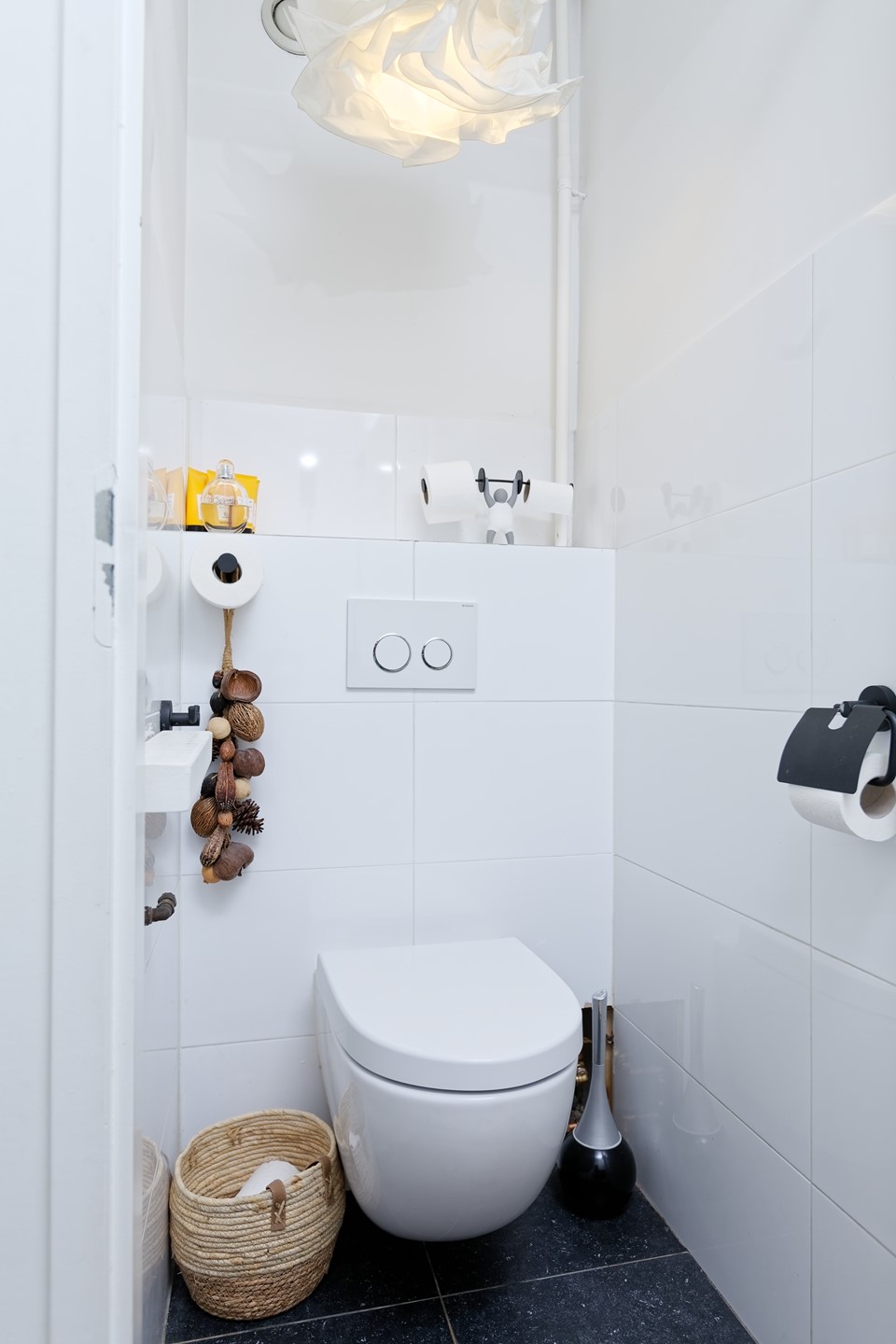 Verder beschikt het appartement nog over een separate wasruimte met aansluitingen voor het witgoed en een modern toiletruimte met fonteintje. In de kelderruimte een eigen berging van ca. 5 m².
