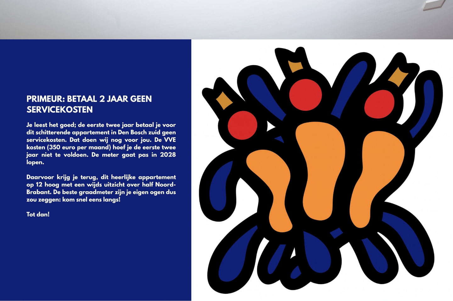 Dus de VvE service kosten a € 350,= / p mnd gaan pas in 2028 lopen.