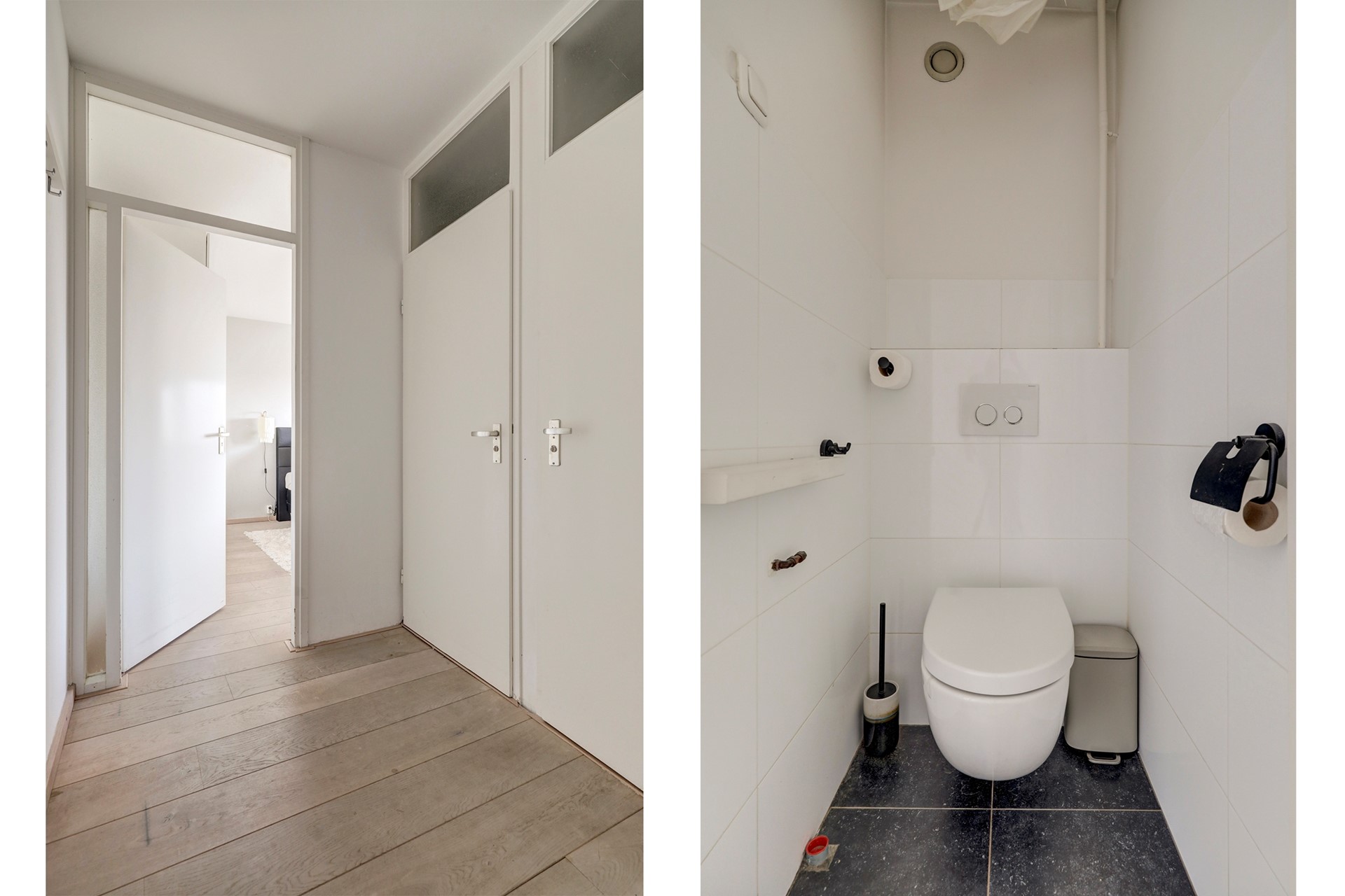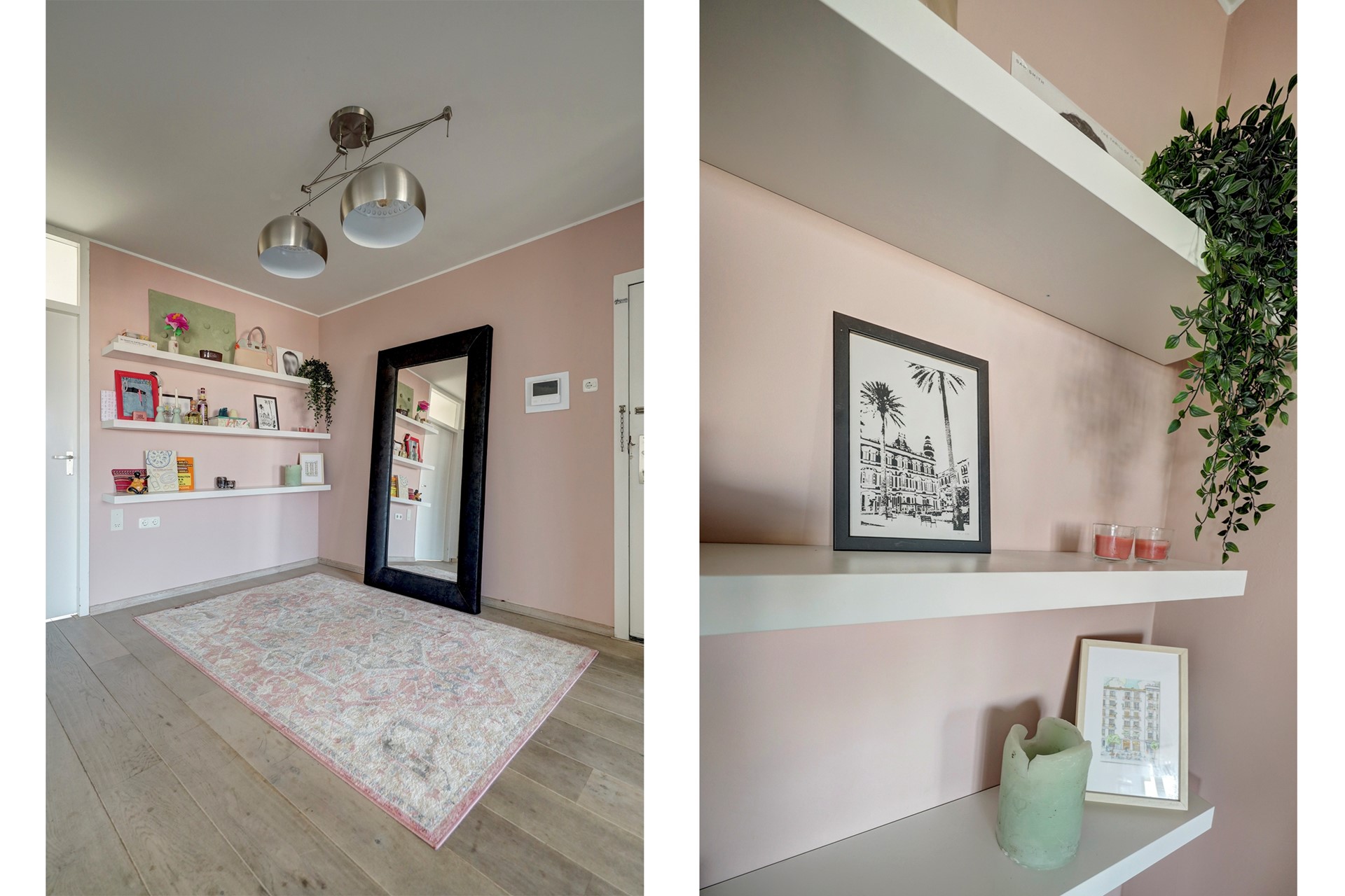 De portiekflat is modern afgewerkt, dus je hoeft eigenlijk nauwelijks over klussen na te denken; strakke vloeren, een frisse keuken, een comfortabele badkamer, en genoeg mogelijkheden om je eigen gezelligheid erin te gooien.