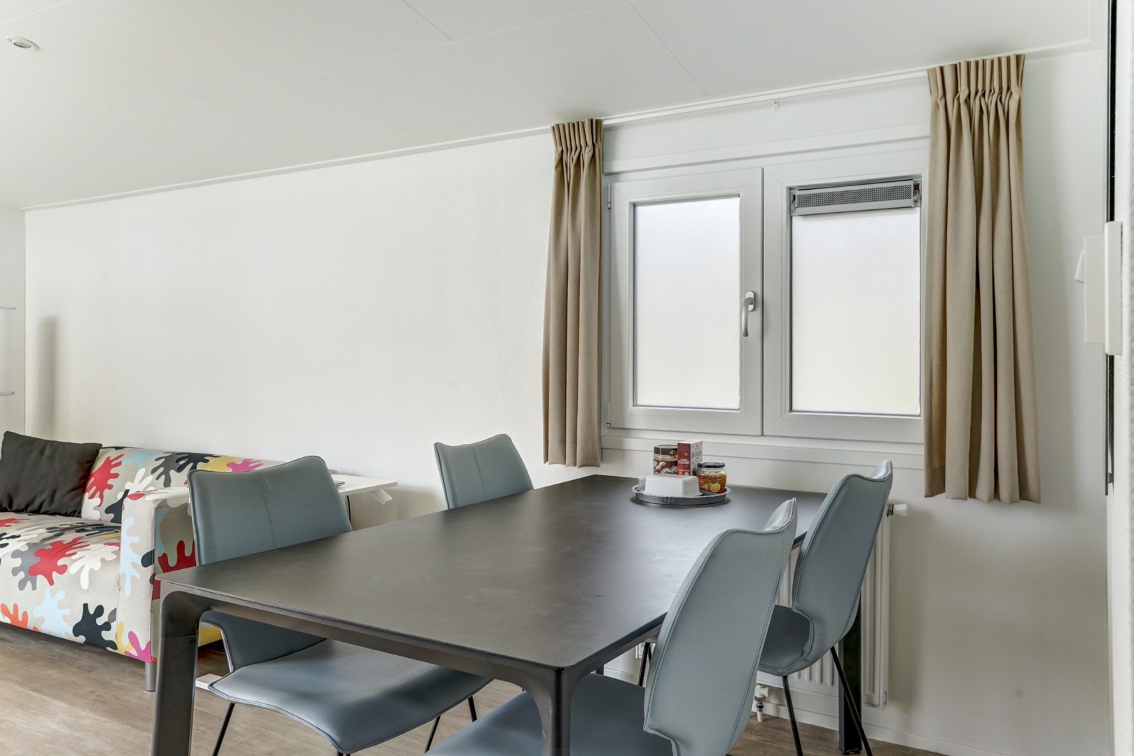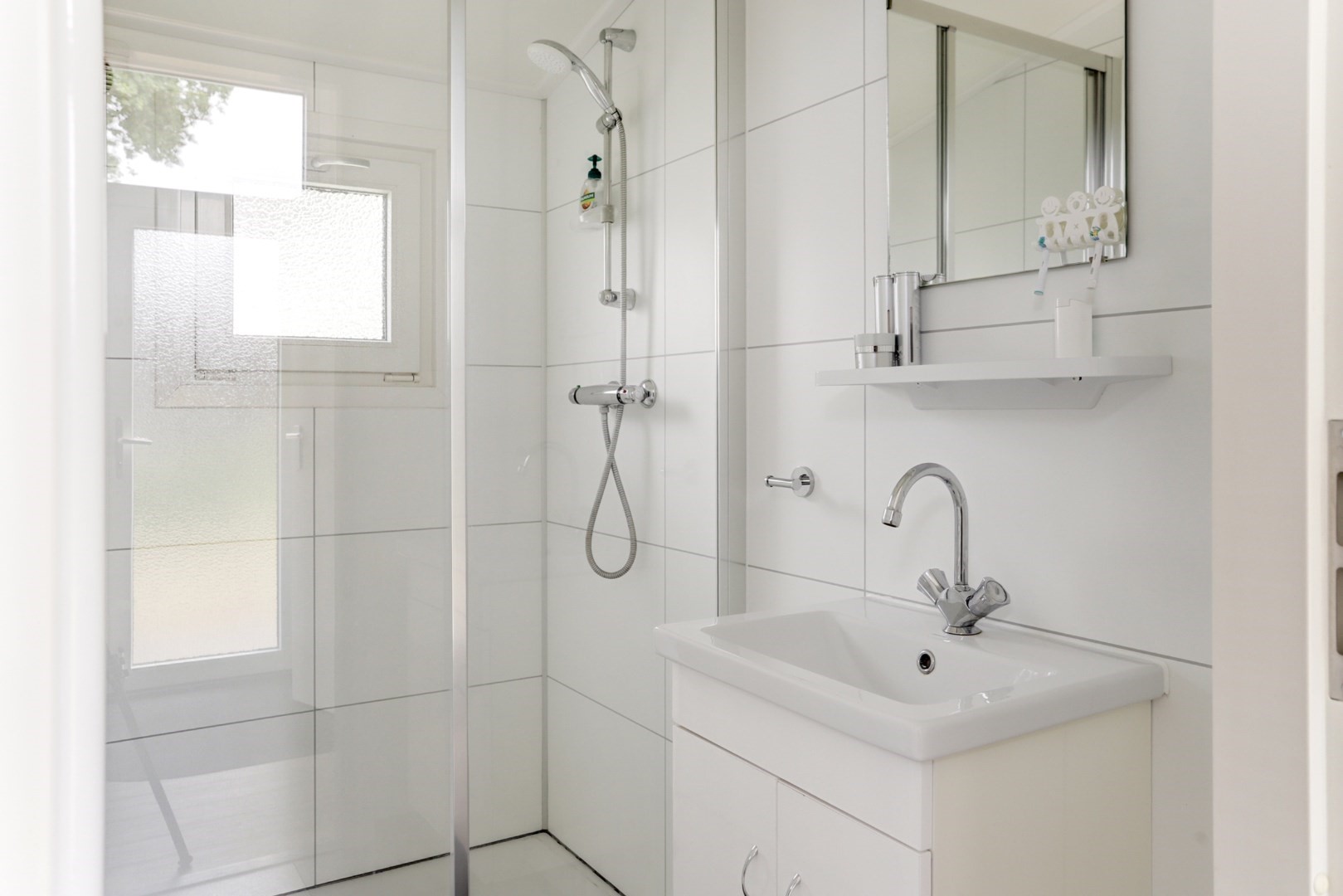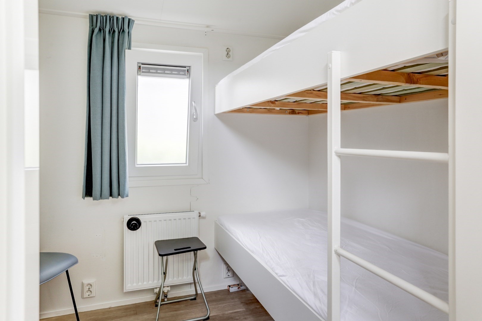 Bij binnenkomst valt direct de lichte en gezellige woonkamer op, met ruimte voor een comfortabele zithoek en eethoek. De open keuken is voorzien van moderne inbouwapparatuur, ideaal voor wie van gemak en koken houdt. De ouderslaapkamer beschikt over een vaste kast, terwijl de kinderslaapkamer is ingericht met een praktisch stapelbed. De compacte badkamer is voorzien van een douche en vaste wastafel. Het toilet is separaat, wat extra comfort biedt. Door de slimme bergruimtes is elke vierkante meter optimaal benut.