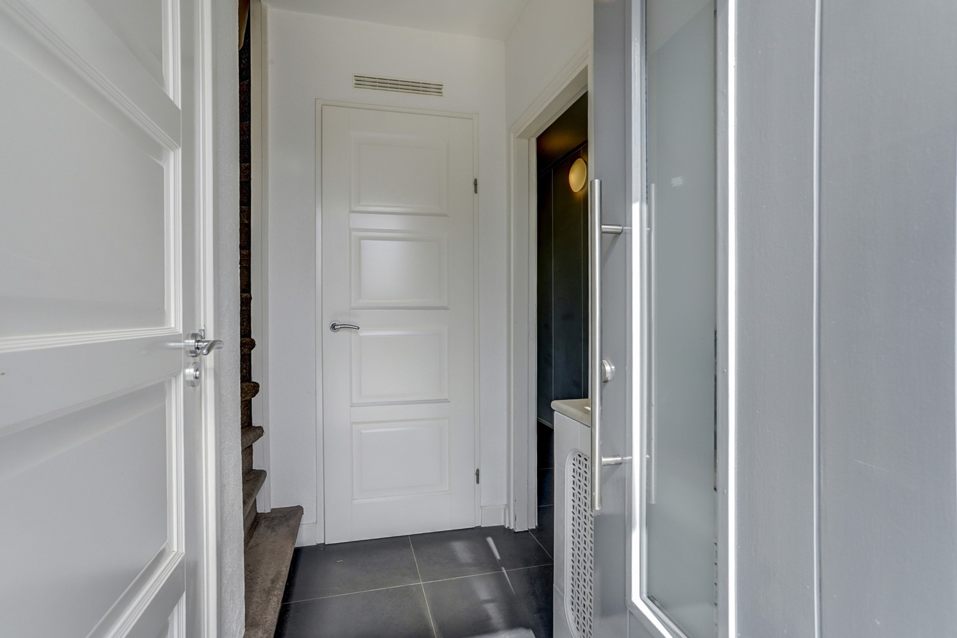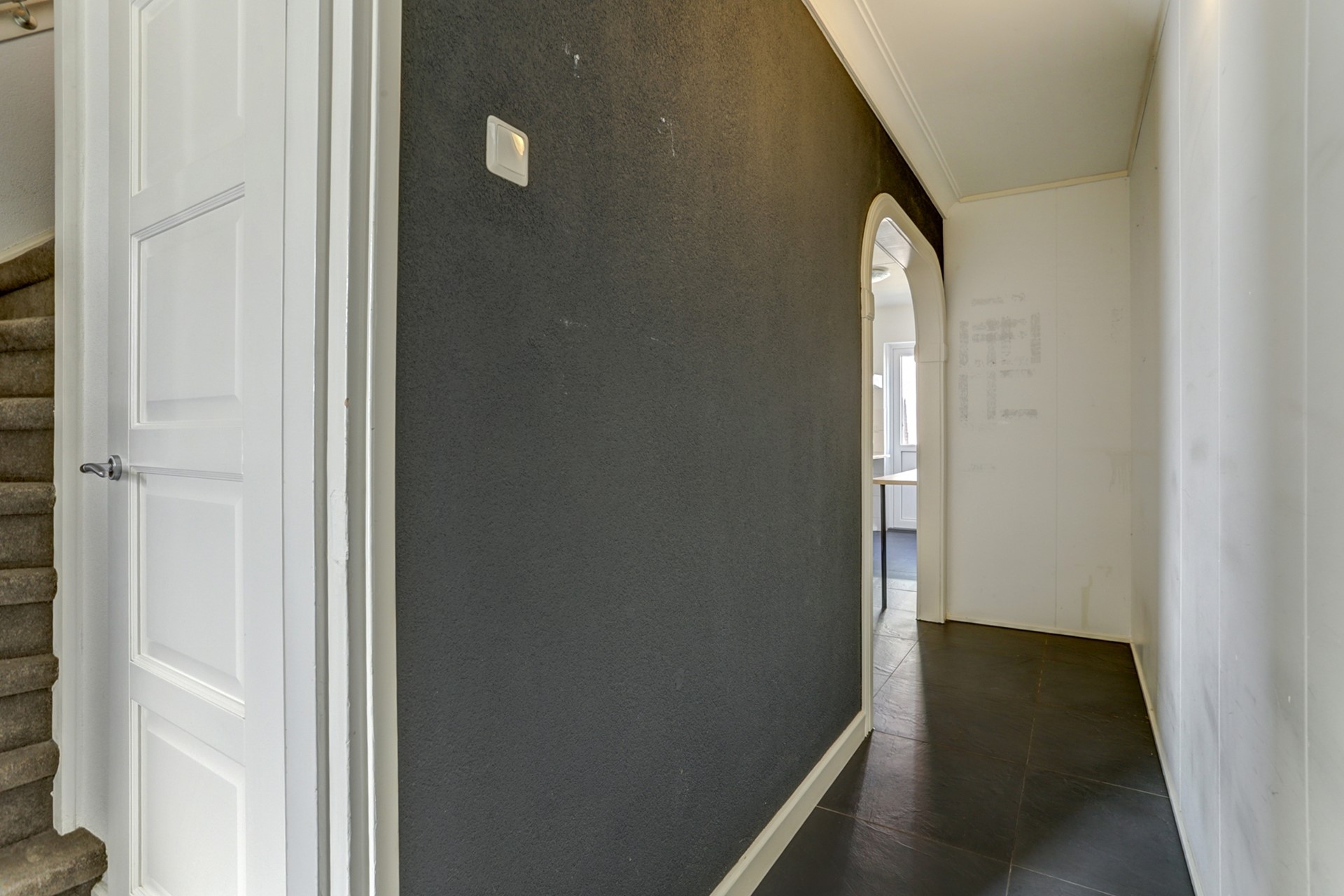 Indeling: via de entree en voordeur komt U in de centrale hal, met trapopgang, toilet en meterkast ; deze laatste is uitgevoerd met 11 groepen en 3 aardlekschakelaars. Hier vindt u ook de witgoedaansluiting en de groepenverdeling van de vloerverwarming.